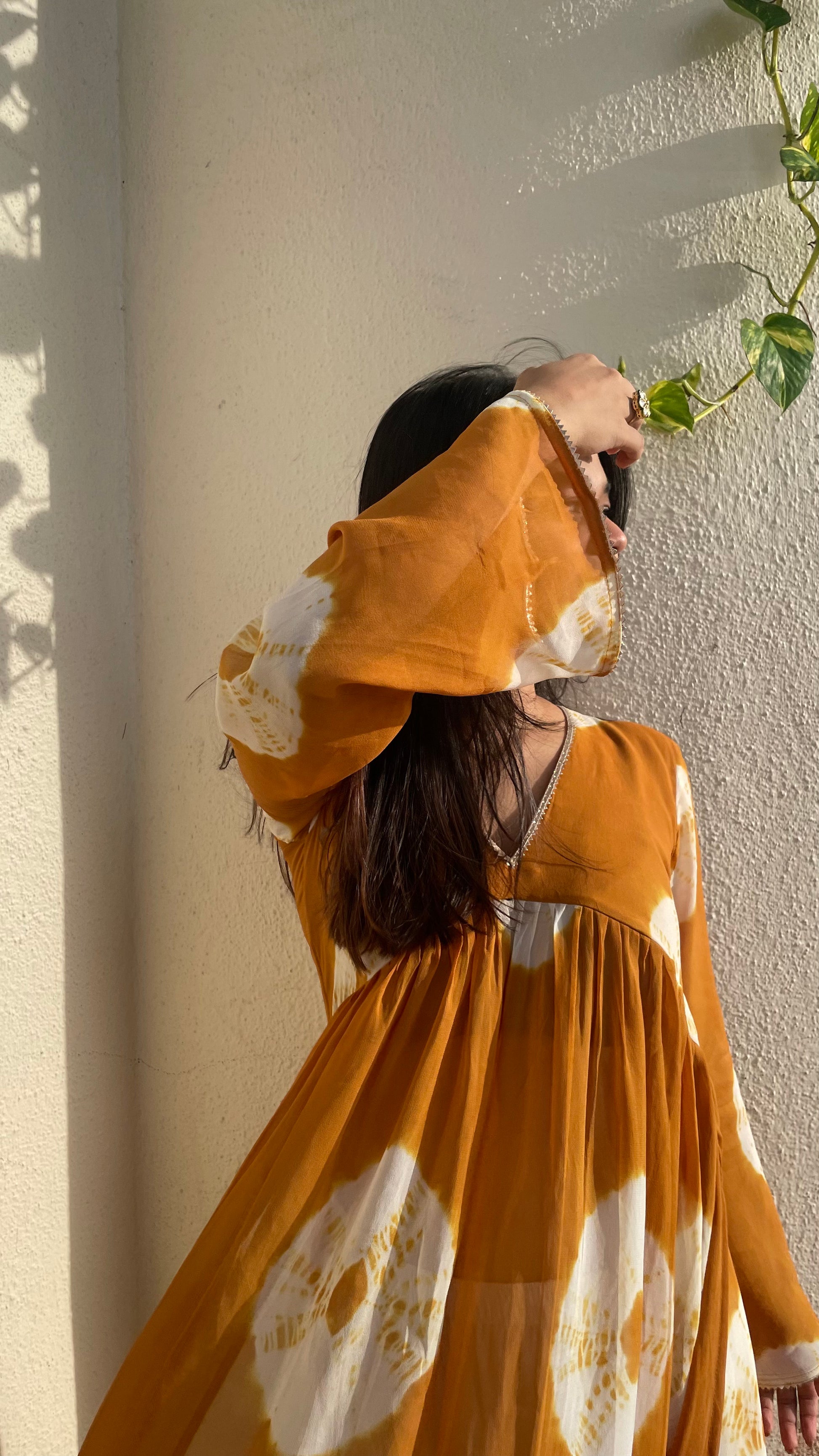 Description - Graceful & Dreamy, this georgette Kurta is crafted in airy silhouette with dreamy bell sleeves that sway with grace. Hand-dyed in delicate tie-dye hues. Perfect for festive gatherings and moments that deserve a little magic.